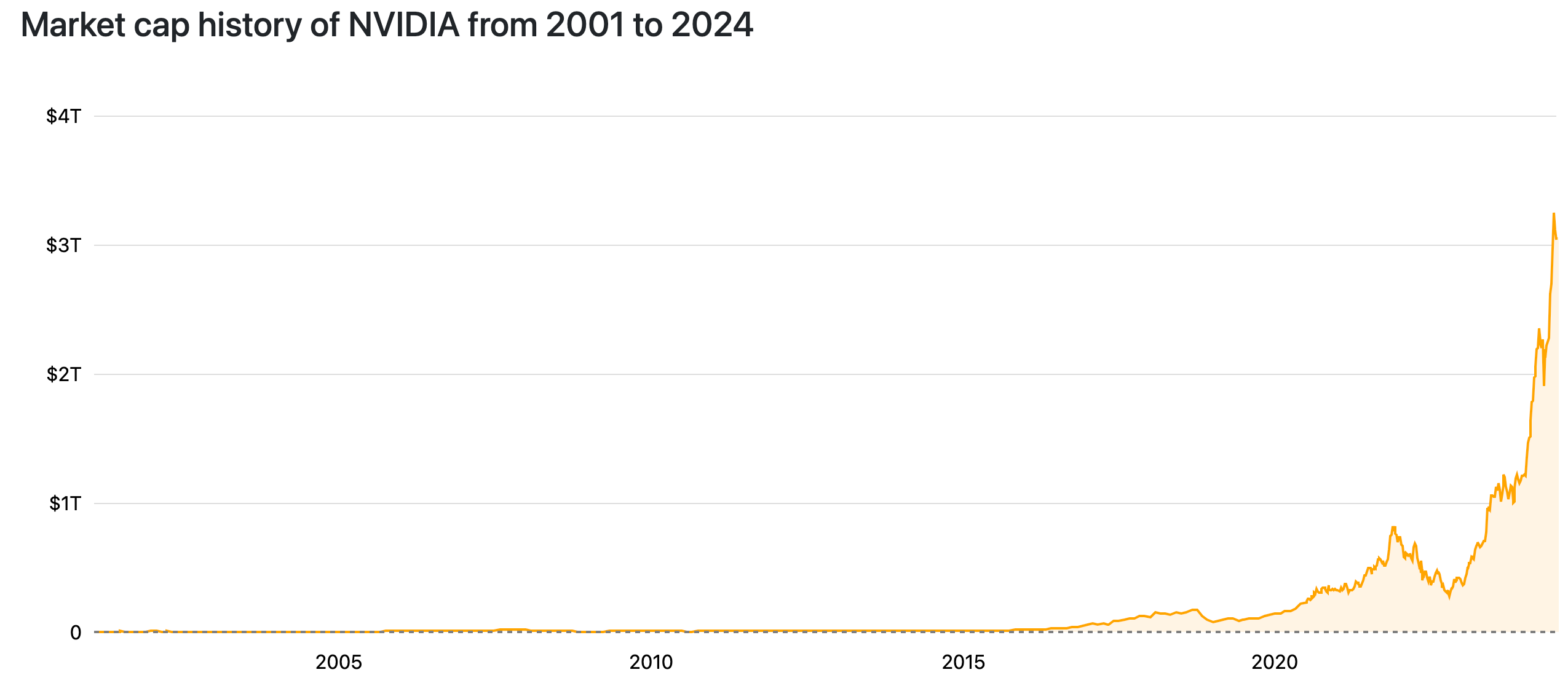 And it’s going well: at its peak on June 18, 2024, Nvidia was briefly the most valuable company in the world with a market cap of $3.34 trillion (with a T), surpassing Microsoft, Apple, and Google.