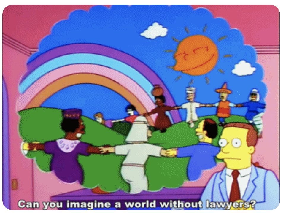 I mean, can you imagine a world without lawyers? Sounds OK to me. 😂